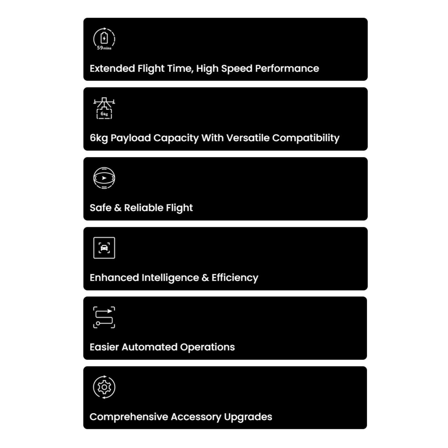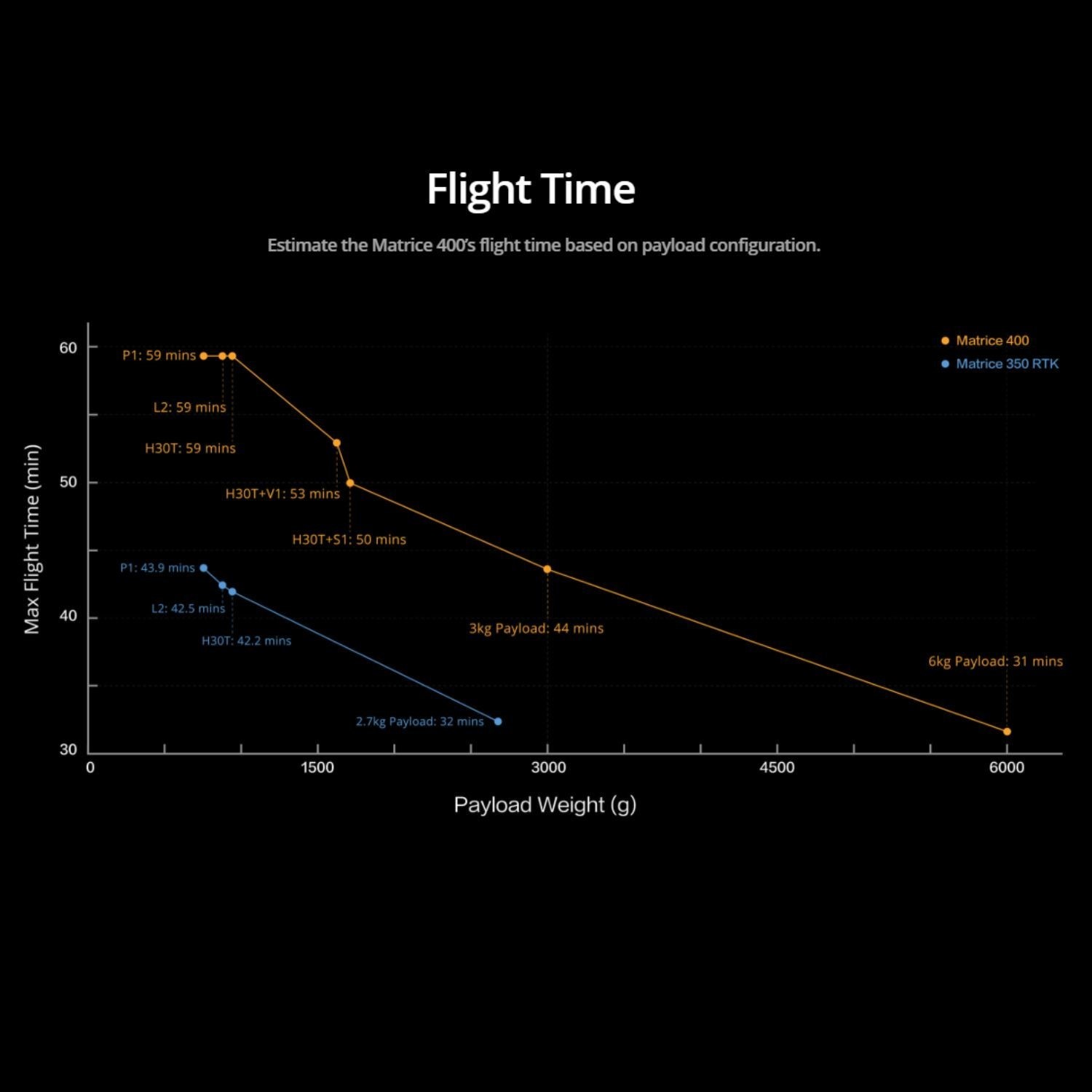 Depending on the task, Matrice 400 can be equipped with the Zenmuse H30 Series, L2, P2, S1 Spotlight, V1 Speaker, Manifold 3, or third-party payloads, thereby expanding its capabilities and unlocking the full potential of the DJI ecosystem